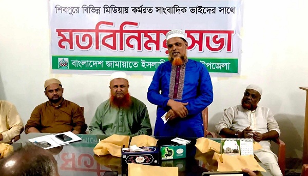 সাংবাদিকরা সত্যের পথে আলোর প্রদীপ, তাদের সহযোগিতা ছাড়া সমাজে সৎচেতনা জাগ্রত রাখা সম্ভব নয়।” অতিথি হিসেবে বক্তব্য রাখেন নরসিংদী জেলা জামায়াতে ইসলামীর শুরা সদস্য মাওলানা মো. আব্দুল লতিফ খান ও উপজেলা জামায়াতের মজলিসে শুরার সদস্য অধ্যাপক আতাউর রহমান। আলোচনায় অংশ নিয়ে সাংবাদিক নেতারা পেশাদারিত্ব, গণমাধ্যমের স্বাধীনতা ও ন্যায়ের পক্ষে লেখার গুরুত্ব তুলে ধরেন। মতবিনিময় সভায় বক্তব্য রাখেন শিবপুর প্রেসক্লাবের সাবেক সভাপতি, আসাদুজ্জামান, নুরুল ইসলাম নূরচান, সাবেক আহ্বায়ক এডভোকেট বদরুল আলম, আলম খান, সাবেক সাধারণ সম্পাদক, আরিফ হাসান, সাংবাদিক মাসুম, ইলিয়াস হায়দার, মোমেন খানসহ আরও অনেকে। সভাপতি এস. এম. খোরশেদ আলম ও সাধারণ সম্পাদক শেখ মানিক সাংবাদিকদের ঐক্য ও পেশাগত নীতিবোধ রক্ষার আহ্বান জানান। শেষে দোয়া ও শুভকামনার মধ্য দিয়ে সমাপ্ত হয় এই মতবিনিময় সভা, যা একে অপরের প্রতি শ্রদ্ধা, সহযোগিতা ও দায়িত্ববোধ জাগানোর এক সেতুবন্ধন হিসেবে স্মরণীয় হয়ে থাকে।