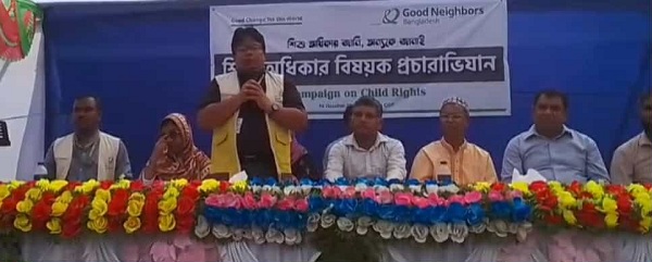 কুড়িগ্রাম প্রতিনিধি: কুড়িগ্রামে শিশু অধিকার বিষয়ক প্রচারাভিযান অনুষ্ঠিত হয়েছে। আজ বৃহস্পতিবার( ১৬ অক্টোবর) দুপুরে কুড়িগ্রাম সদরের যাএাপুর ইউনিয়নে ঝুনকার চর সরকারি বিদ্যালয় মাঠে বিভিন্ন আয়োজনে শিশু অধিকার বিষয়ক প্রচারাভিযান অনুষ্ঠিত হয়। এসময় গুডনেইবারস বাংলাদেশ কুড়িগ্রাম সিডিপি ম্যানেজার রোমিও রতনের সভাপতিত্বে প্রধান অতিথি হিসেবে উপস্থিত ছিলেন কুড়িগ্রাম সদর প্রাথমিক শিক্ষা অফিসার এস.এন শরিফুল ইসলাম খন্দকার। বিশেষ অতিথি হিসেবে উপস্থিত ছিলেন কুড়িগ্রাম সদর যুব উন্নয়ন কর্মকর্তা আজগার আলী,যাএাপুর ইউনিয়ন পরিষদের প্যানেল চেয়ারম্যান রহিমুদ্দিন হায়দার রিপন, আনন্দ কুমার দাশ ডিরেক্টর গুডনেইবারস, গুডনেইবারস প্রোগ্রাম অফিসার বাবু মন্ডল, যাএাপুর মহিলা উন্নয়ন সমবায় সমিতি লিমিটেড এর সভাপতি নিশিতা আক্তার নাজমা প্রমুখ। অনুষ্ঠানটি সঞ্চালনার দায়িত্বে ছিলেন জোবায়দা আলম জেরিন ও রাজিব রানা নেইচার এন্ড পিস ক্লাব সদস্য। এসময় প্রধান অতিথি শরিফুল ইসলাম খন্দকার বলেন শিশু অধিকার প্রতিষ্ঠার মাধ্যমে আমাদের দেশের উন্নয়ন সম্ভব।