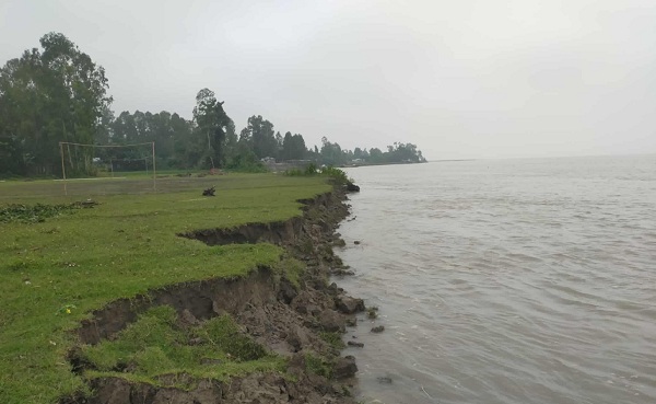 রোকনুজ্জামান সবুজ জামালপুরঃ অসময়ে যমুনা নদীভাঙনের আতঙ্কে দিন কাটছে জামালপুরের ইসলামপুর বেলগাছা ইউনিয়নের মন্নিয়া গ্রামের এলাকাবাসী। মঙ্গলবার সকালে সরেজমিনে গিয়ে জানাযায়, রাক্ষসী যমুনা ভাঙ্গনে ইতোমধ্যে একটি মসজিদ,প্রায় শতাধিক একর জমি ও দেড় শতাধিক বসতঘরসহ অনেক স্থাপনা নদীগর্ভে বিলীন হয়ে গেছে। ভাঙনের ঝুঁকিতে রয়েছে, ৮ কোটি টাকার সোলার প্যানেল,মন্নিয়া সরকারি প্রাথমিক বিদ্যালয়,মন্নিয়া উচ্চ বিদ্যালয়,দক্ষিণ মন্নিয়া সরকারি প্রাথমিক বিদ্যালয়,চারটি মাদ্রাসা,ছয়টি মসজিদ,ফসলি জমি,বসতঘরসহ সরকারি-বেসরকারি নানা স্থাপনা। এ বিষয়ে মন্নিয়া উচ্চ বিদ্যালযের ভারপ্রাপ্ত প্রধান শিক্ষক আমজাদ হোসেন বলেন,মন্নিয়া উচ্চ বিদ্যালয় থেকে মাত্র কয়েক শত গজ দূরে রয়েছে নদী। আমরা এখন চরম ঝুঁকির মধ্যে দিন পার করছি। যেভাবে ভাঙন শুরু হয়েছে জরুরিভিত্তিতে কোনো ব্যবস্থা না নিলে কয়েক দিনের মধ্যেই বিলীন হয়ে যেতে পারে একমাত্র ঐতিহ্যবাহী প্রতিষ্ঠানটি। যেখানে প্রায় ২৫০ জন শিক্ষার্থী এবং আমরা শিক্ষক-কর্মচারী রয়েছি ১৮জন।প্রতিষ্ঠানের শিক্ষক-শিক্ষার্থী ও অভিভাবকরা বড় উৎকন্ঠায় দিন পার করছেন। মন্নিয়া উচ্চ বিদ্যালযের দশম শ্রেণির শিক্ষার্থী শাকিল আহম্মেদ জানায়,এক মাস আগেও নদী অনেক দূরে ছিল। এখন নদী ভাঙতে ভাঙতে স্কুলের কাছাকাছি চলে এসেছে। এক মাস পর আমাদের ফাইনাল পরীক্ষা, প্রতিষ্ঠান যদি ভেঙে যায় তাহলে আমাদের পড়ালেখার মারাত্মক ক্ষতি হবে। শাকিল আহম্মেদ মতো একই কথা বলে নবম শ্রেণির শিক্ষার্থী দিশামনি ও শহীদ মিয়া। দক্ষিণ মন্নিয়া সরকারি প্রাথমিক বিদ্যালয় প্রধান শিক্ষক শামসুন্নাহার খানাম বলেন,নিজেদের আমার স্কুল থেকে প্রায় কয়েকশত গজ দূরে নদীর অবস্থান। এই স্কুলে শতাধিক শিক্ষার্থী রয়েছে। আমরা ভাঙন রোধে স্থায়ী সমাধান চাই। বেলগাছা ইউনিয়নের সাবেক চেয়ারম্যান আব্দুল খালেক আকন্দ জানান, অসময়ে নদীভাঙন আমাদের জন্য বড় ক্ষতির কারণ হয়ে গেছে। এখনই যদি ভাঙন ঠেকাতে কোনো ব্যবস্থা না হয় তাহলে একাধিক সরকারি ও বেসরকারি স্থাপনা,ফসলি জমি ও বসতঘর নদী গ্রাস করে নেবে। স্থানীয় ইউপি সদস্য মমতাজ আকন্দ বলেন,আমার নিজের বাড়ি গত কয়েক মাস আগে যমুনা নদী ভেঙেছে। এখন কোনোমতে টিকে রয়েছি। যে অবস্থায় আবার ভাঙন শুরু হয়েছে,তাতে সরকারি ও বেসরকারি প্রতিষ্ঠান এবং ফসলি জমিসহ অসংখ্য বসতঘর নদীতে বিলীন হয়ে যাবে। জরুরিভিত্তিতে এর একটি সমাধান চাই আমরা। জামালপুর পানি উন্নয়ন বোর্ডের নির্বাহী প্রকৌশলী নকিবুজ্জামান খান জানান, ভাঙন কবলিত স্থানে পরিদর্শন করে ব্যবস্থা নেওয়া হবে।