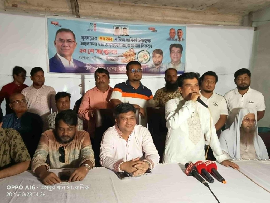 আব্দুস সবুর খান টঙ্গী থেকে ঃ গতকাল মঙ্গলবার দুপুরে ৫৬ নং ওয়ার্ডে মেগা সিটিতে যুবদলের ৪৭তম প্রতিষ্ঠা বার্ষিকী উপলক্ষে আলোচনা সভা ও দুস্থদের মাঝে তবারক বিতরণ করা হয়। উক্ত অনুষ্ঠানে প্রধান অতিথি হিসেবে উপস্থিত ছিলেন গাজীপুর ৬ আসনের মনোনয়ন প্রত্যাশী ও টঙ্গী পূর্ব থানার বিএনপির সভাপতি সরকার জাবেদ আহমদ সমুন , উক্ত অনুষ্ঠানে সভাপতিত্ব করেন গাজীপুর মহানগর যুবদলের ১ নং যুগ্ম আহ্বায়ক ও টঙ্গী পূর্ব থানার আহ্বায়ক আকবর হোসেন ফারুক, আরো উপস্থিত ছিলেন গাজীপুর মহানগর যুবদলের সিনিয়র যুগ্ন আহবায়ক বেনজির আহমেদ পিন্টু, ৫৬ ওয়ার্ডের বিএনপির সভাপতি গাজী আমানুল্লাহ আমান, যুবদলের নেতা আবুল হোসেন, জাবেদ মাহমুদ,আব্দুল কুদ্দুস শিতল, আঃ সালাম, প্রমুখ, উক্ত অনুষ্ঠানে আকবর হোসেন ফারুক বলেন ৫ আগস্টের আগে দুর সময় যারা বিএনপির সাথে থেকে হামলা মামলায় স্বীকার হয়েছেন তারাই আগামীতে নেতৃত্ব দিবেন । আলোচনা শেষে দোয়া ও তবারক বিতরণ করা হয়।